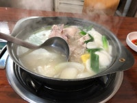 돼지, 닭 모두 취급 중인 K-국밥집 45년 노포인데 젊은 부부 사장님이 운영하시는 중 아무래도 2대째... 노계 한마리를 결대로 찢어낸 닭한마리 맛보기 닭육수 뚝배기도 하나 딸려나오고 아무래도 노계라...